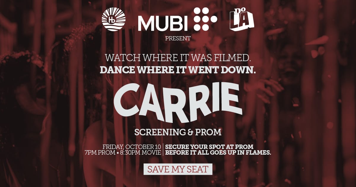 DoStuff x MUBI’s CinemAdventures launches with Carrie on Friday, 10/10 at the gym in Hermosa Beach where it all went down. A scream-filled night awaits, complete with a ‘70s prom, costume contest, live music, and screening.